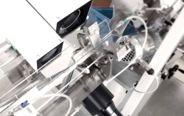Beim kontrollierten Gleiten über die Glasrutsche werden die Teile durch 1 – 5 hochauflösende Kameras gescannt. Die berührungslose Prüfung gewährleistet eine schnelle und präzise Qualitätskontrolle.