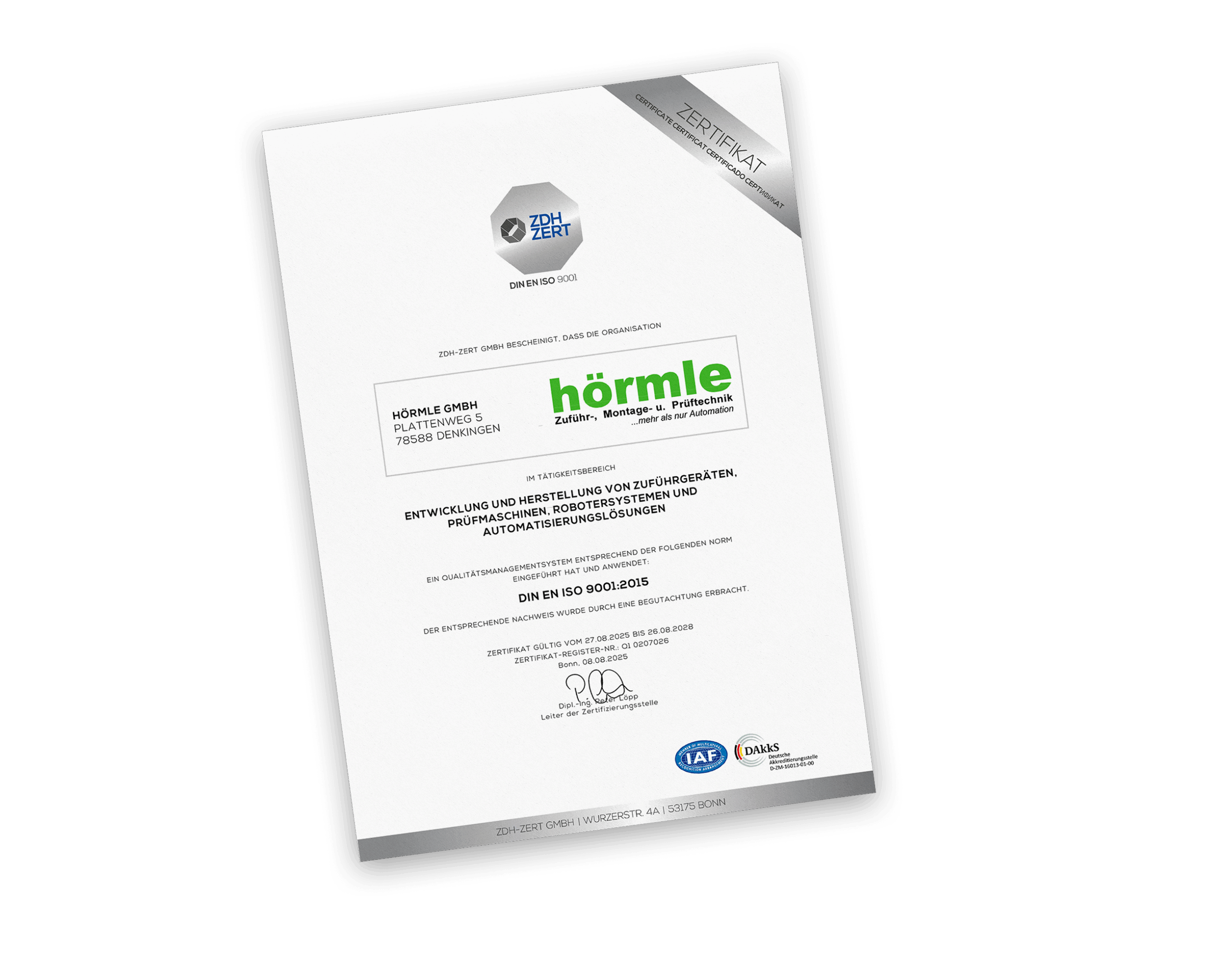 Die Firma hörmle Zuführ-Montagetechnik wurde von Wolfgang Hörmle in Denkingen gegründet. Seitdem steht das Unternehmen für maßgeschneiderte Lösungen, hohe Fertigungstiefe und zuverlässige Technik im Maschinenbau.